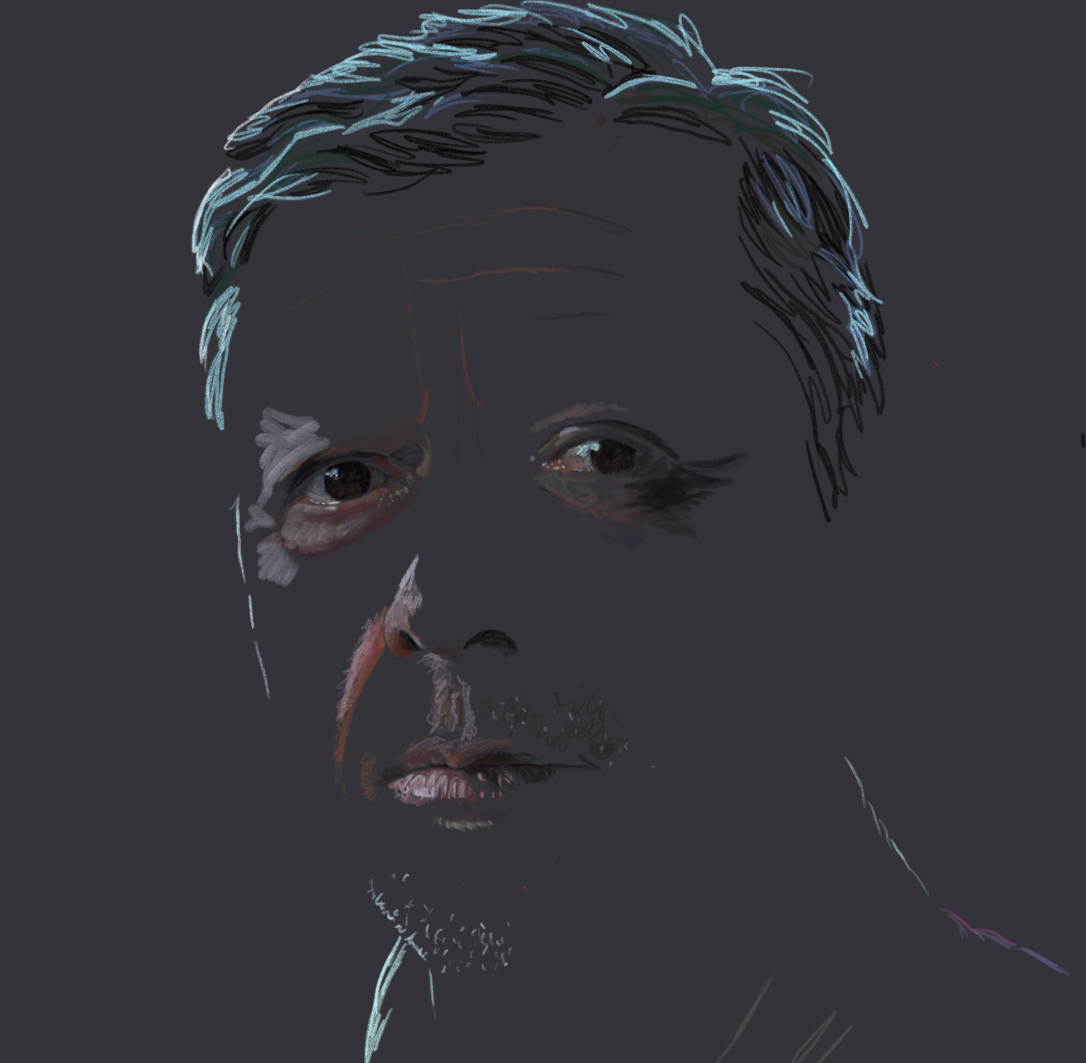 Shade and Shadow is a study of how portraits change with varying lighting conditions and colors, revealing the impact of light on mood, expression, and perception.